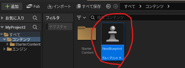コンテンツドロワーの追加>ブループリントクラスを選択します。