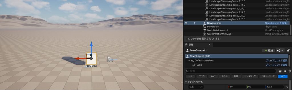 補足:基本的にブループリントではxyzの3つの座標を1つのベクターデータを入力とするノードが多いです。(Locationなど)