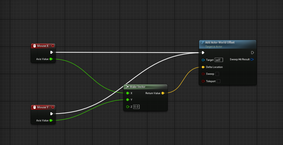 Make VectorでマウスのX、Y座標をベクターデータにまとめ、マウスで動かした分をオフセットとしてアクタの座標に足すということをしています。