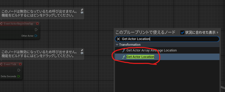 検索欄にSet Actor Locationと入力しSet Actor Locationを選択します。
