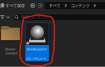 コンテンツドロワーに「NewBlueprint」という名前のブループリントクラスが生成されます。